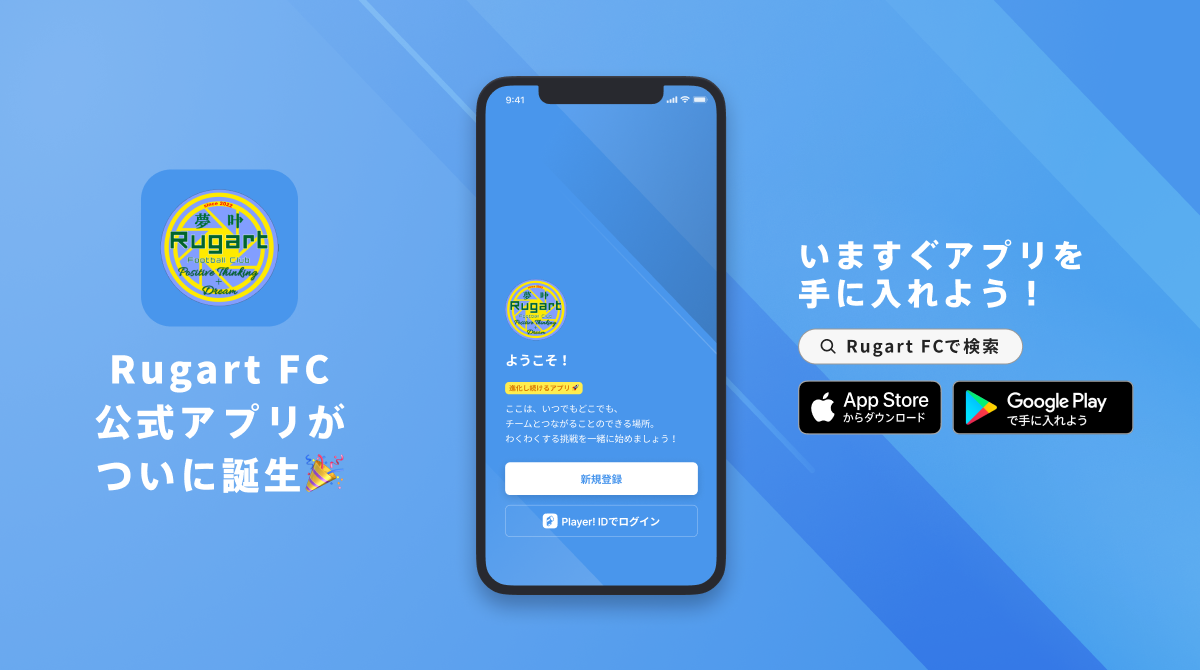 AppStoreもしくはGooglePlayで「Rugart FC」と検索!