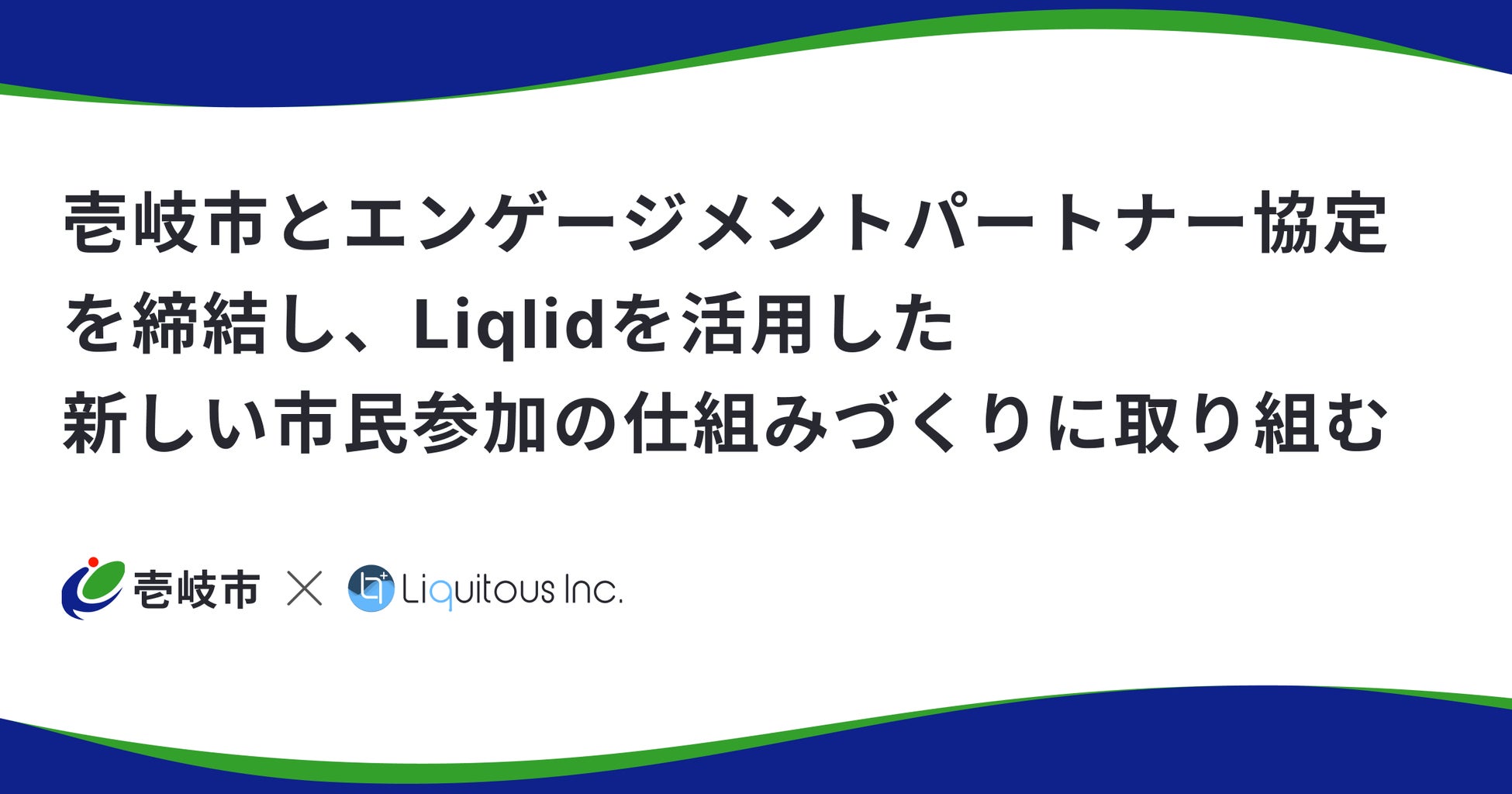 株式会社Liquitous(本社:神奈川県横浜市、代表取締役CEO:栗本 拓幸)は、長崎県壱岐市(市長:白川 博一)と「壱岐市エンゲージメントパートナー協定」を締結しました。