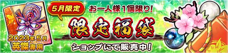 当月に開催されるイベント「【埋み火より芽吹く】&【イベント遺跡】特効!英傑 縁結び」で使用できる「【御朱印付き】5月・英傑結糸(10回)」を1個と、キャラクターの強化に必要なアイテムがまとめて手に入るお得なセットです。