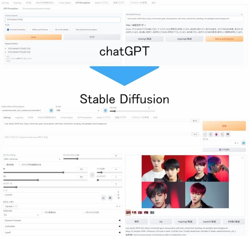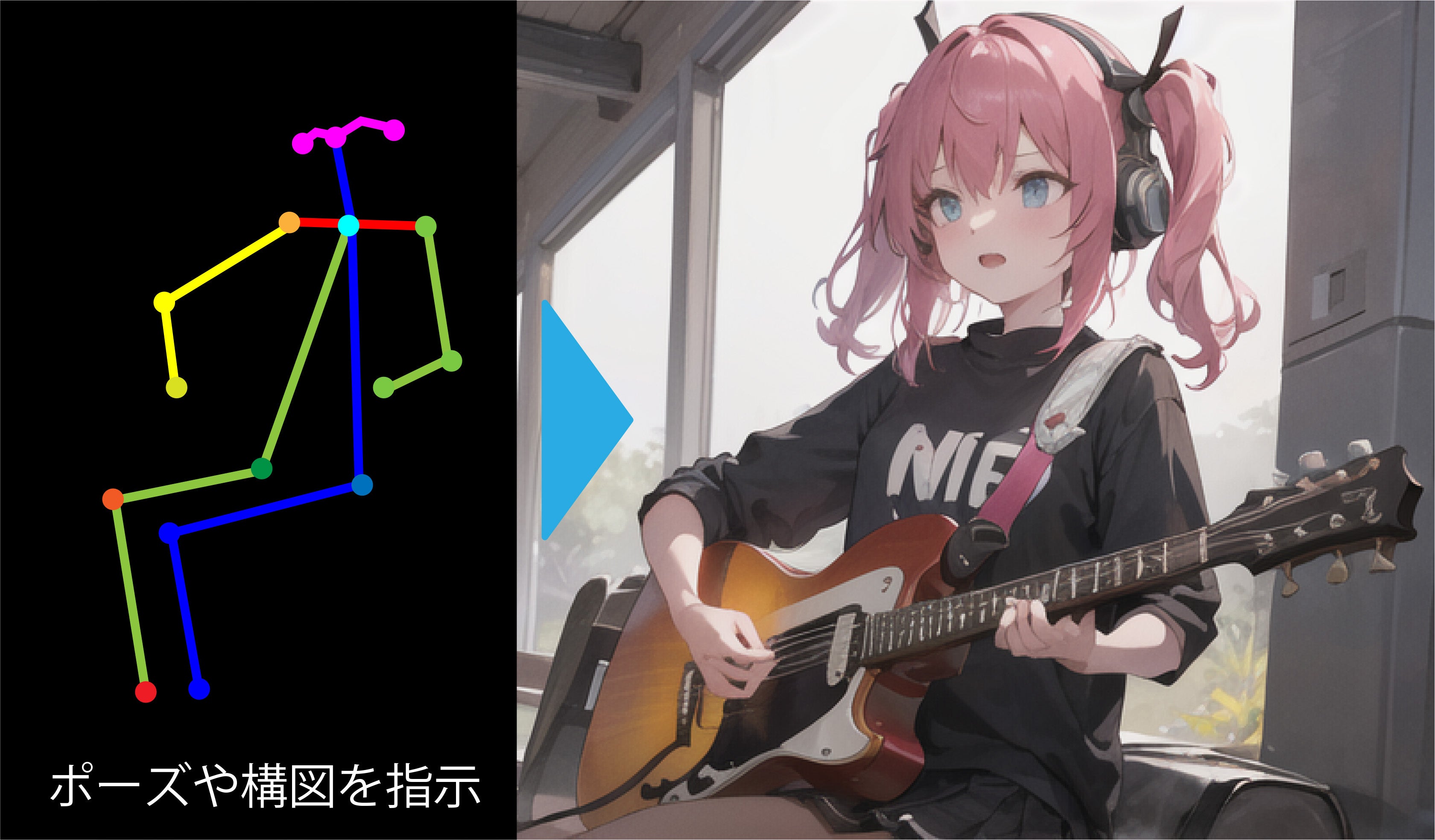 最先端の画像生成AI技術である「StableDiffusion」「Midjourney」を活用しています、さらに、お客様の任意の生成モデルを簡単にインストールできカスタマイズ可能です。なお、ControlNetも活用可能となっており、人物の表情やポーズ、構図などをコントロールすることができます。従来のプロンプト指示だけでなく、より具体的な指示を行って生成画像をカスタマイズすることが可能です。