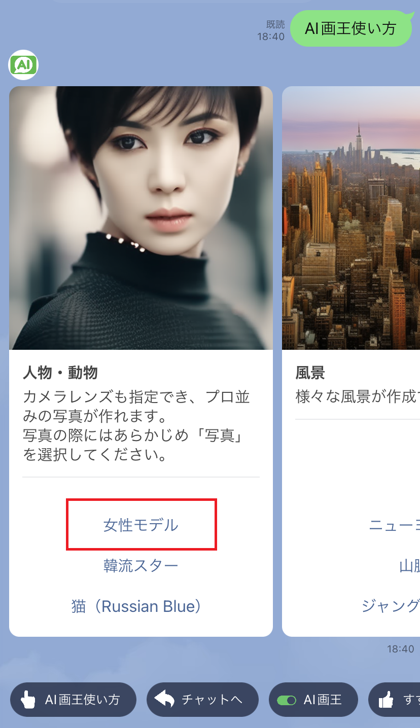LINEで手軽にChatGPTのAIとチャットやStable Diffusionを利用した画像作成ができるサービスです。