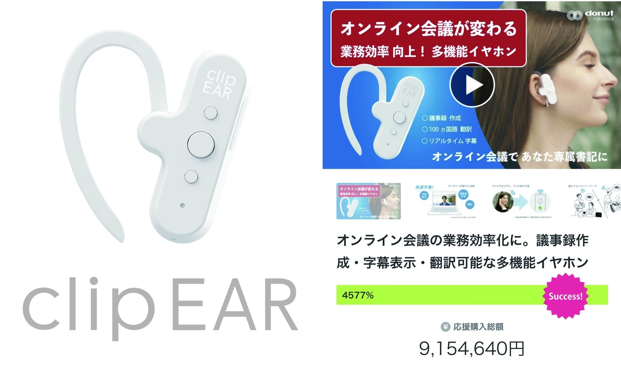 2020年に、世界初のスマートマスクを発表したドーナッツロボティクスは、2022年の世界家電見本市「CES」でイヤホン型デバイスclip EARを発表しました。