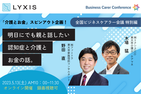 「介護とお金」特別編では、弊社チーフ・ケア・オフィサー木場のほか、家族信託・成年後見の専門家である株式会社ファミトラの講師をお招きし、「認知症とお金の話」をメインテーマとした講演を予定しております。