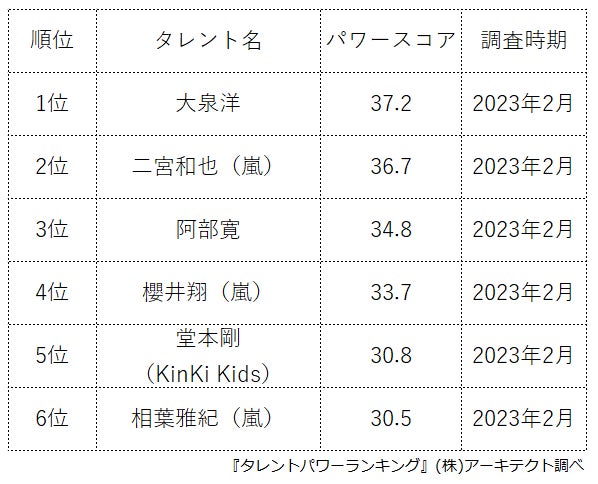 本ランキングは、2023年2月度に実施したタレント調査データ(一部過去実施データ)を利用し、タイトルに応じてランキング形式でまとめたものです。