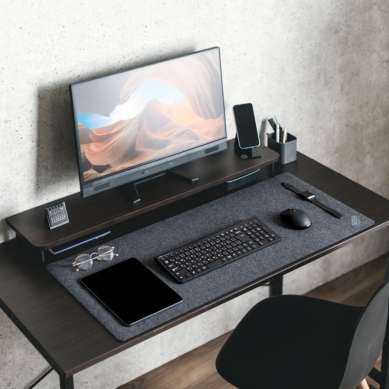 フェルト製で存在感のある大きめのマットは置くだけでデスクをおしゃれに見せてくれます。
