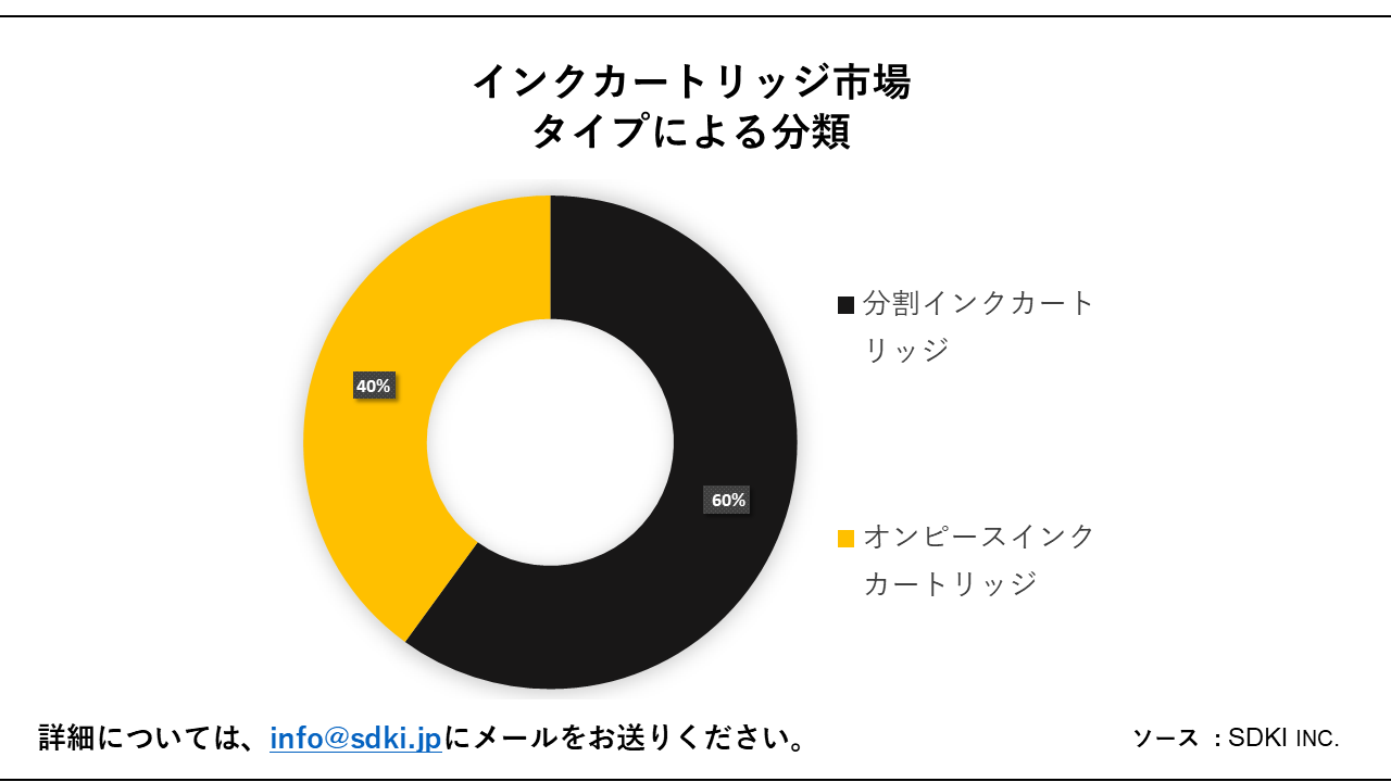 質問:インクカートリッジ市場の主要な分類は何ですか?