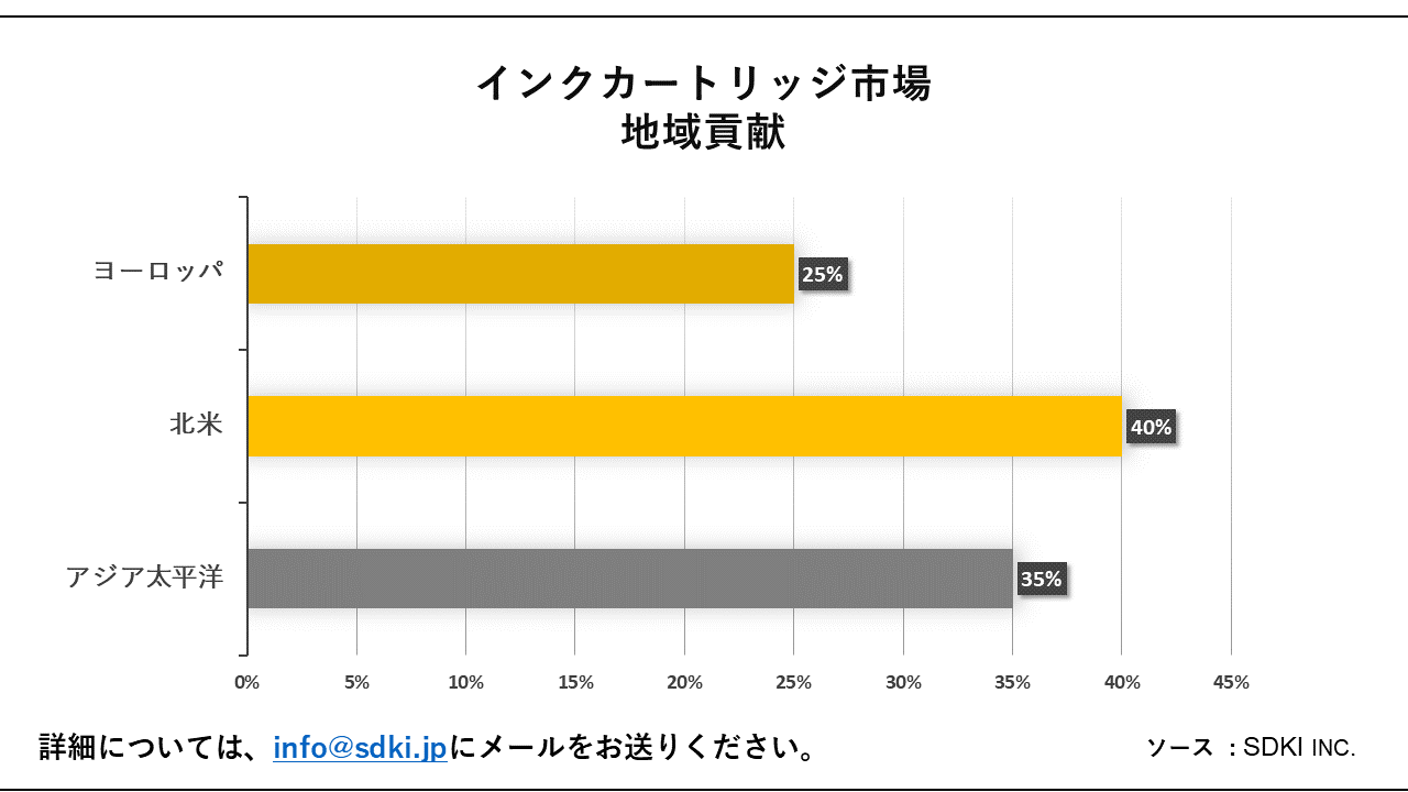 質問:2035年までにインクカートリッジ市場で大きな市場シェアを保持するか、顕著な成長を示すと予想される他の地域はどれですか? 日本におけるインクカートリッジ市場の傾向は何ですか?