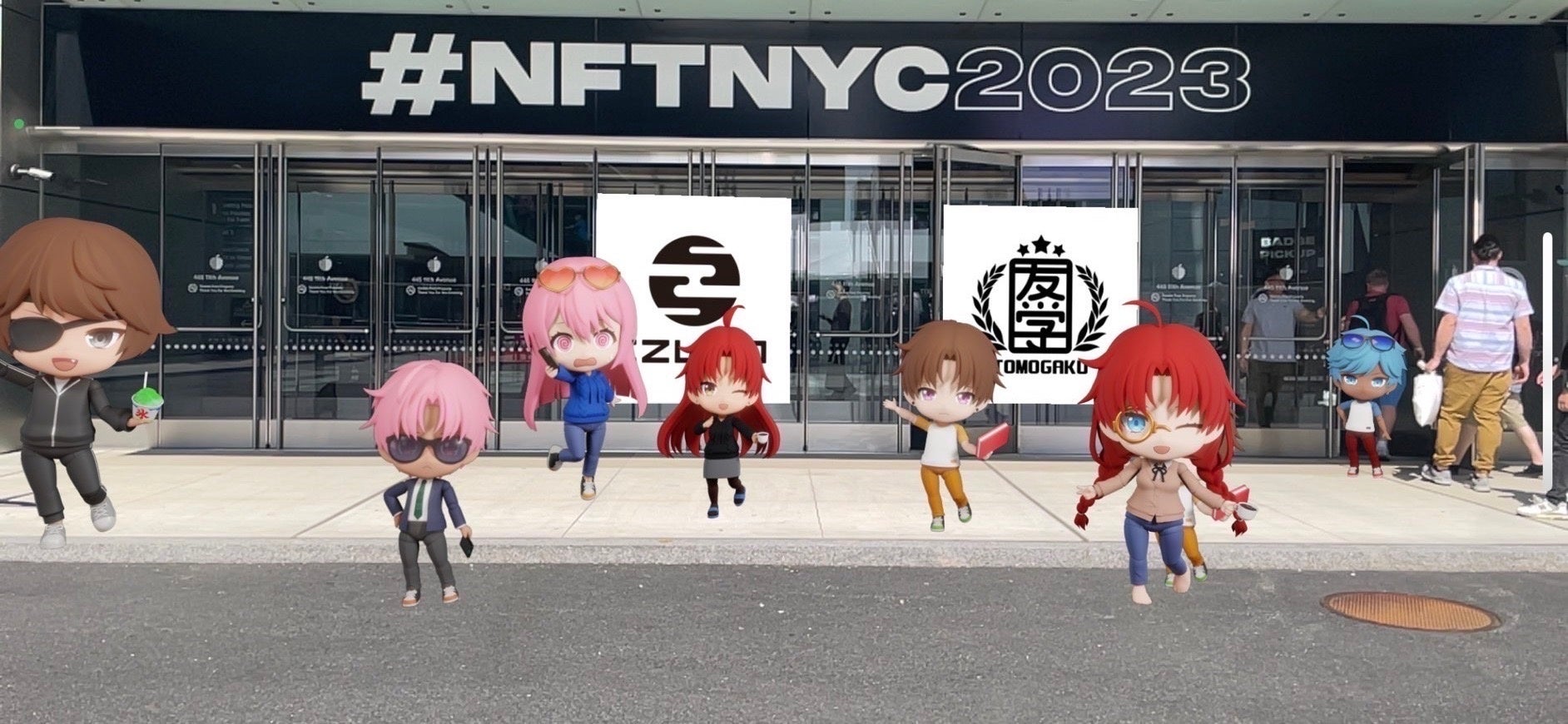 NFT NYC2023での『IZUMO ARメタバース』と『友学園』がテストコラボレーションの様子。