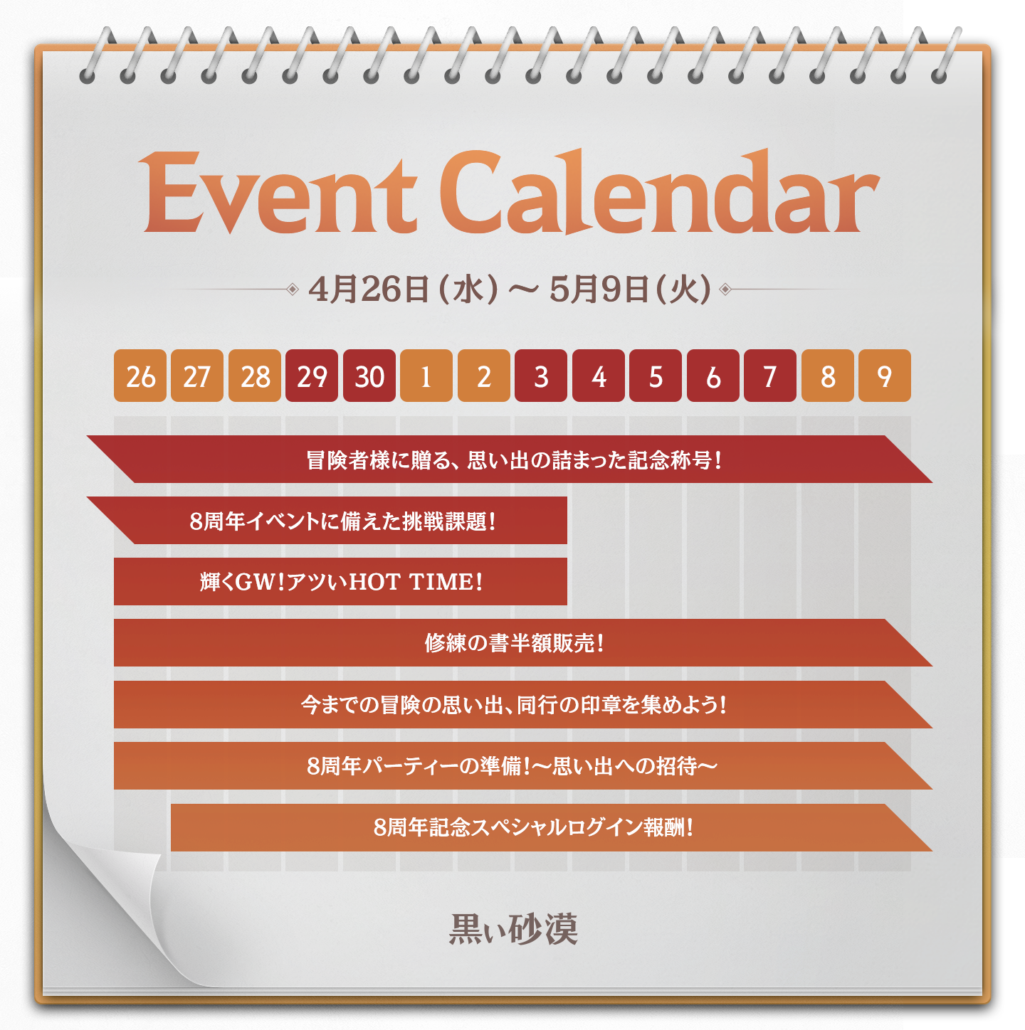 イベントの詳細は、お知らせが公開されてからのお楽しみですが、その前に、5月3日(水)から開催される8周年イベントの一部をご紹介します。