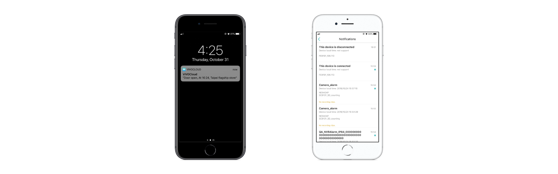 VIVOCloudは、あなたの大切なものを見守り、どこにいてもモバイル端末にアラートをプッシュ通知します。さらに、通知の履歴を見ることもできます。ライブ映像の配信を常にチェックする必要はなく、通知が表示されたときだけチェックすればいいのです。