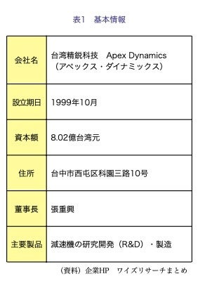 中部科学園区(中科)に本社を置く台湾精鋭科技(アペックス・ダイナミックス)は、遊星歯車減速機の世界市場でトップの座を争う「隠れたチャンピオン(hidden champions)企業」だ。製品の品質が高く、かつそれほど高価格ではないという強みを生かし、半導体、液晶パネル、電気自動車(EV)分野に参入し、毎年、大幅な業績成長を実現している。このような好業績を挙げられるようになったきっかけは、20年前に張重興董事長がドイツ人に抱いた怒りだった。