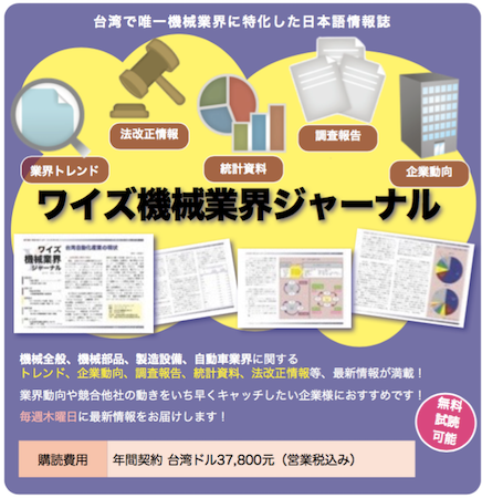 ・日本語台湾経済ニュース、機械業界ジャーナル配信