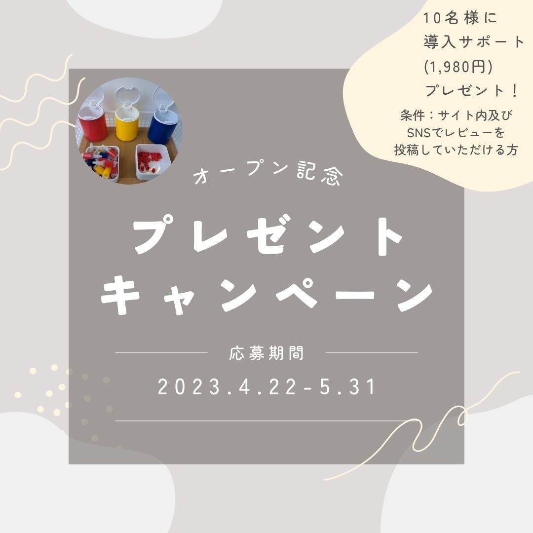オープン記念として、5月31日(水)までに自立課題を一つお買い上げいただいた方に導入サポート(1,980円)をプレゼントいたします。