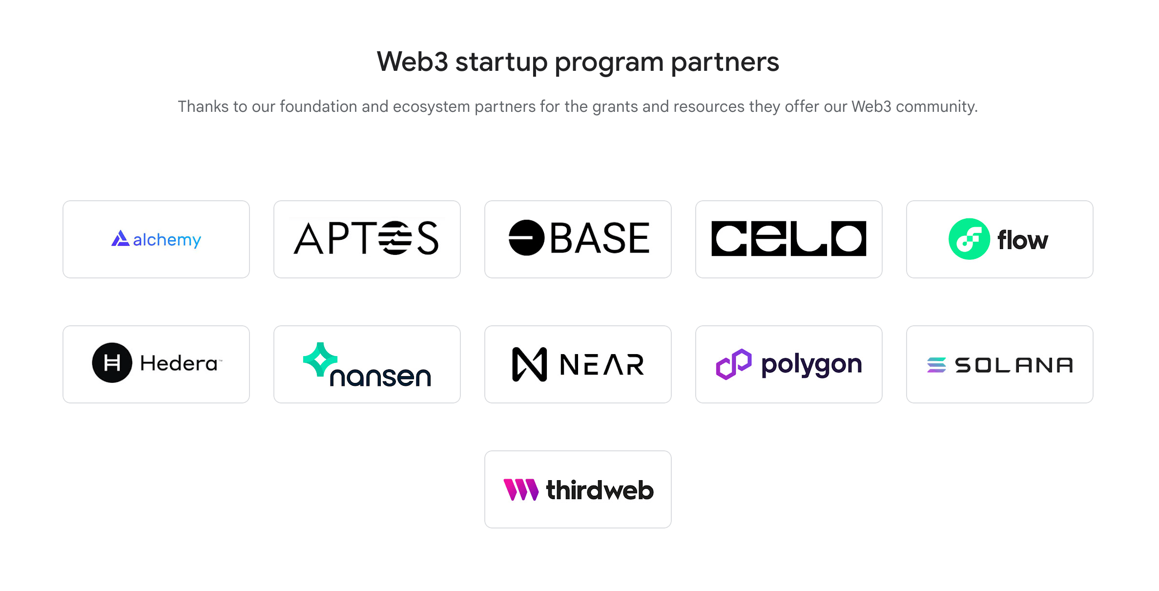 Google Cloud Web3 Startups Program: https://cloud.google.com/startup/web3