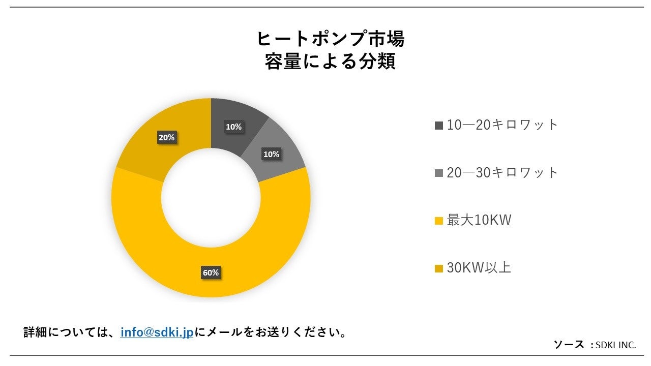 容量に基づいて、さまざまな容量のサブカテゴリの中で、最大 10 KW セグメントが、予測期間中に最大の市場シェアを保持すると予想されます。最大 10 kW の容量で動作するヒート ポンプは非常に効率的です。この容量は、一戸建て住宅のヒートポンプでの使用に特に適しています。したがって、そのような住宅の数の増加は、サブカテゴリの成長につながると予想されます。たとえば、米国では 2021 年に最大 83百万戸の住宅が単身世帯で占められていると推定されています。