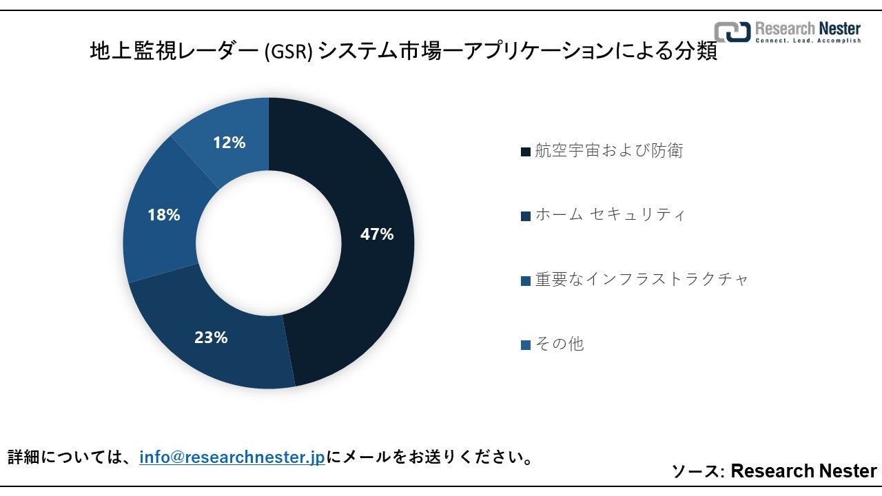 世界の地上監視レーダー (GSR) システム市場は、ホーム セキュリティ、航空宇宙および防衛、重要なインフラストラクチャなどへのアプリケーション別に、需要と供給について分割および分析されています。地上監視レーダー (GSR) システムの 4 つのアプリケーションのうち、航空宇宙および防衛セグメントは、2035 年に最大の市場シェアを獲得すると推定されています。このセグメントの成長は、世界中の航空宇宙および防衛部門での支出の増加に起因する可能性があります。地上監視レーダー システムの需要は、航空宇宙および防衛産業での支出に伴い、おそらく増加するでしょう。2021 年、世界の総軍事費は 0.5% 以上増加しました。2021 年の支出上位 5 か国は、米国、中国、インド、英国、ロシアで、合計で支出の 60% 以上を占めています。