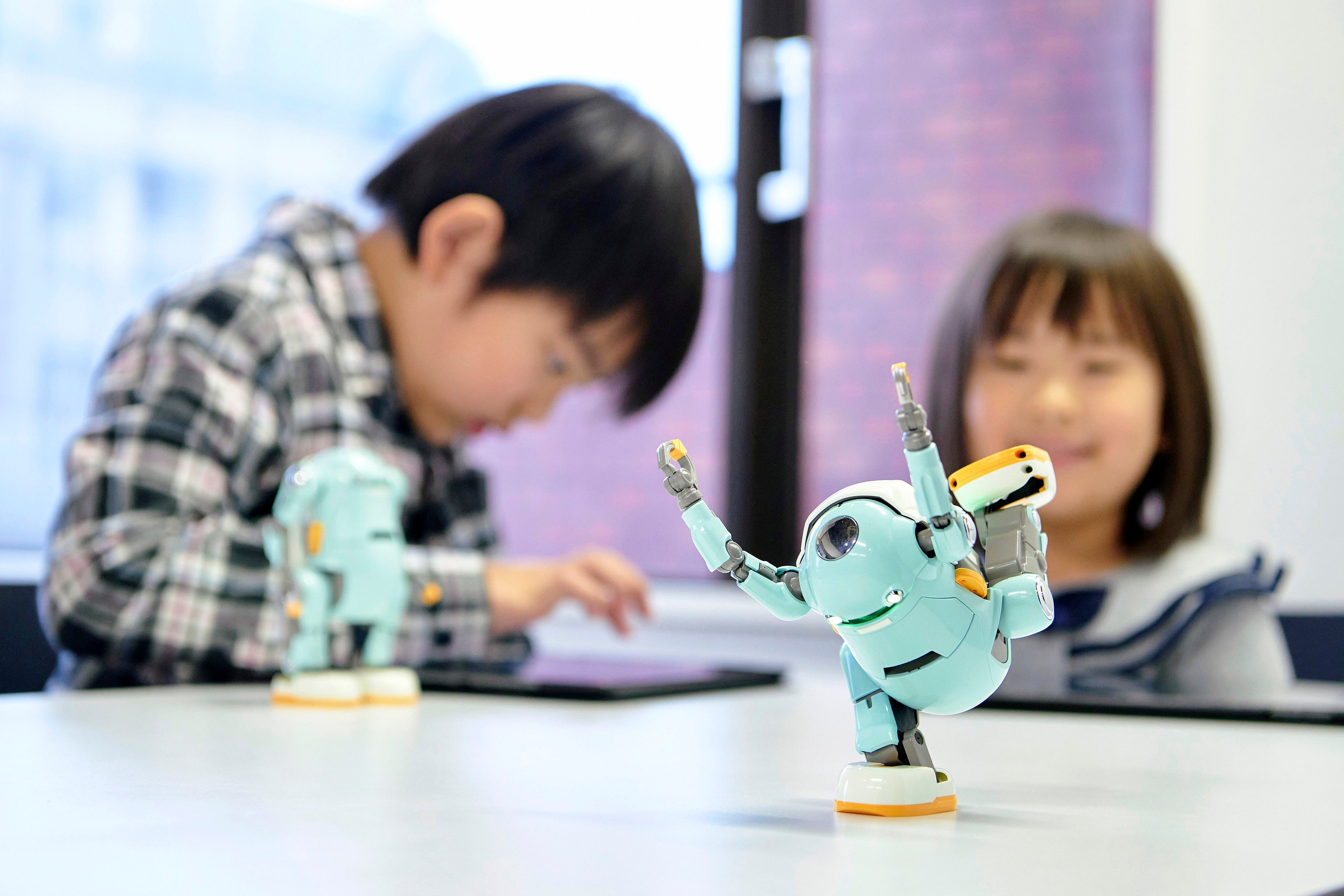 さらに、身長約13cmという小型で愛嬌のあるデザインで、どこでも持ち運びができ、想像力を広げながら学ぶ事が出来るので、自分の分身のような身近な存在となります。
