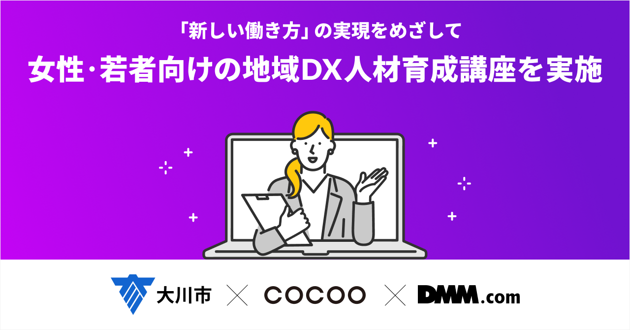 事業の一つとして6月と7月に「地域DX人材育成講座」を開催。コクーは、6/25(日)に開催する女性向けの「Excel無料体験会」に登壇し、大川市の女性がデジタルスキルに触れる機会を提供いたします。