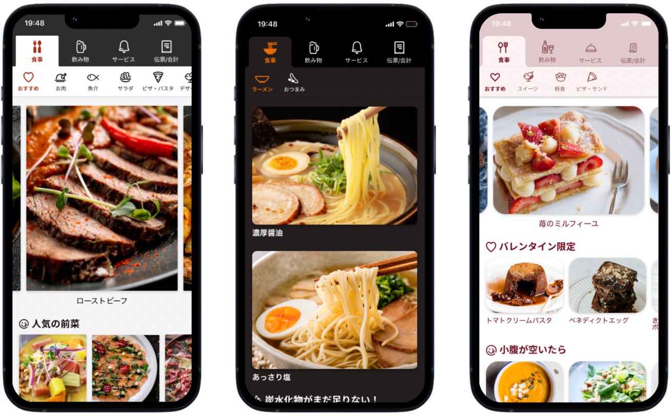 モバイルオーダーに慣れていないお客様でも迷わず直感的に使えることはもちろん、さまざまな料理から好みの料理を簡単に見つけ出したり、お店の人気メニューをお勧めできるようなUI設計も特長です。これら、モバイルオーダー随一のUI/UXへのこだわりによって、スマホでの料理注文が「ワクワクする体験」になりました。