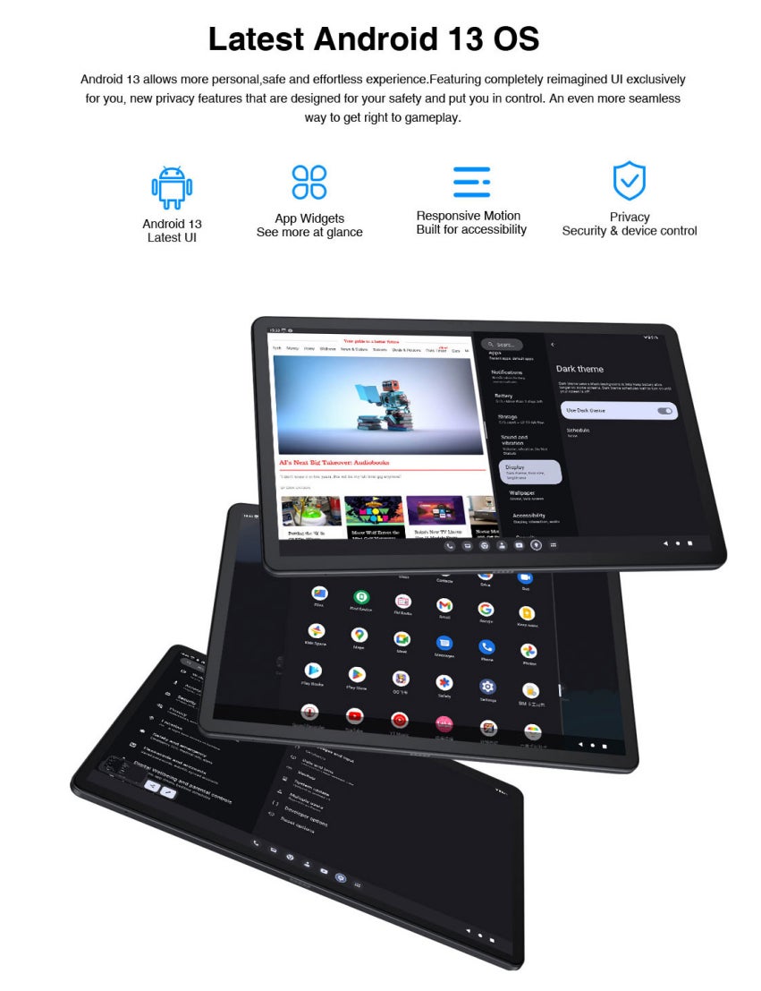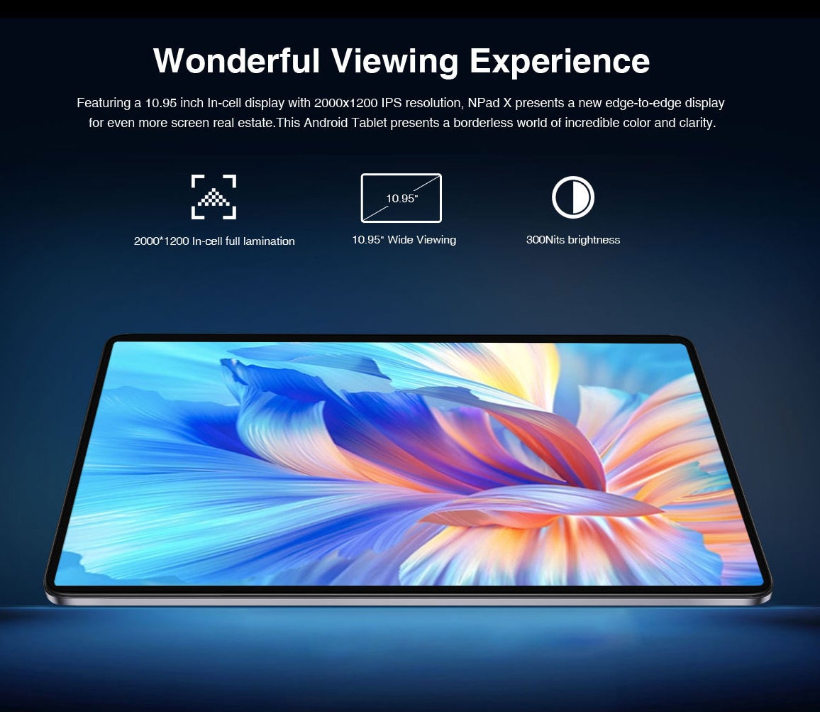 【素晴らしい視覚体験】NPad Xは、2000×1200のIPS解像度を備えた10.95インチのIn-cellディスプレイを搭載し、さらに広い画面領域を実現する新しいエッジ・トゥ・エッジ・ディスプレイを提供します。このAndroidタブレットは、色とクリアな画質の信じられないほどのボーダーレスな世界を提供します。