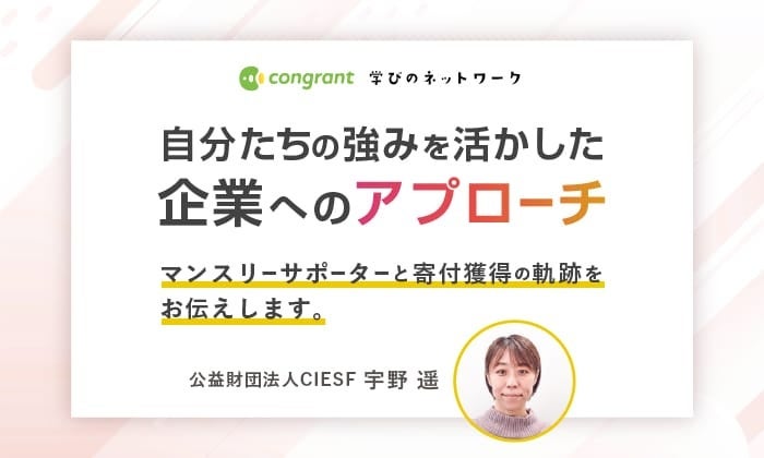 ※セミナーの様子はコングラント有料契約団体向けコンテンツ「動画で学ぶファンドレイジング」(コングラント管理画面内)にて公開中。