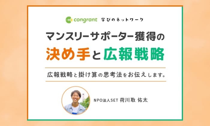 タイトル:マンスリーサポーター獲得の決め手と広報戦略~掛け算の思考法で考える~