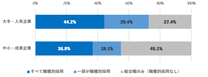 大手・人気企業ほど「職種別採用」を実施しており、中小・成長企業は「総合職採用」が多い