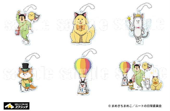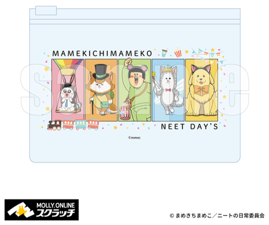 『まめきちまめこニートの日常 モーリーオンラインスクラッチ』は1回748円(税込)で、『まめきちまめこニートの日常』に登場するキャラクターのまめきちまめこ、こまち、タビ、シンバ、メロのテーマパークをイメージしたイラストを使用した限定グッズが当たるオンラインスクラッチのサービスです。 参加方法:モーリーオンラインスクラッチでオンラインスクラッチを購入して、画面上でスクラッチを削って出た等賞が当たります。商品は後日お客さまの自宅へ配送します(別途送料がかかります)。 今回の『まめきちまめこニートの日常 モーリーオンラインスクラッチ』では、全6等賞25アイテムのオリジナルアイテムが当たります。 また、10連セットをご購入のお客さまにはもれなくポストカード(全6種)を1枚プレゼント!