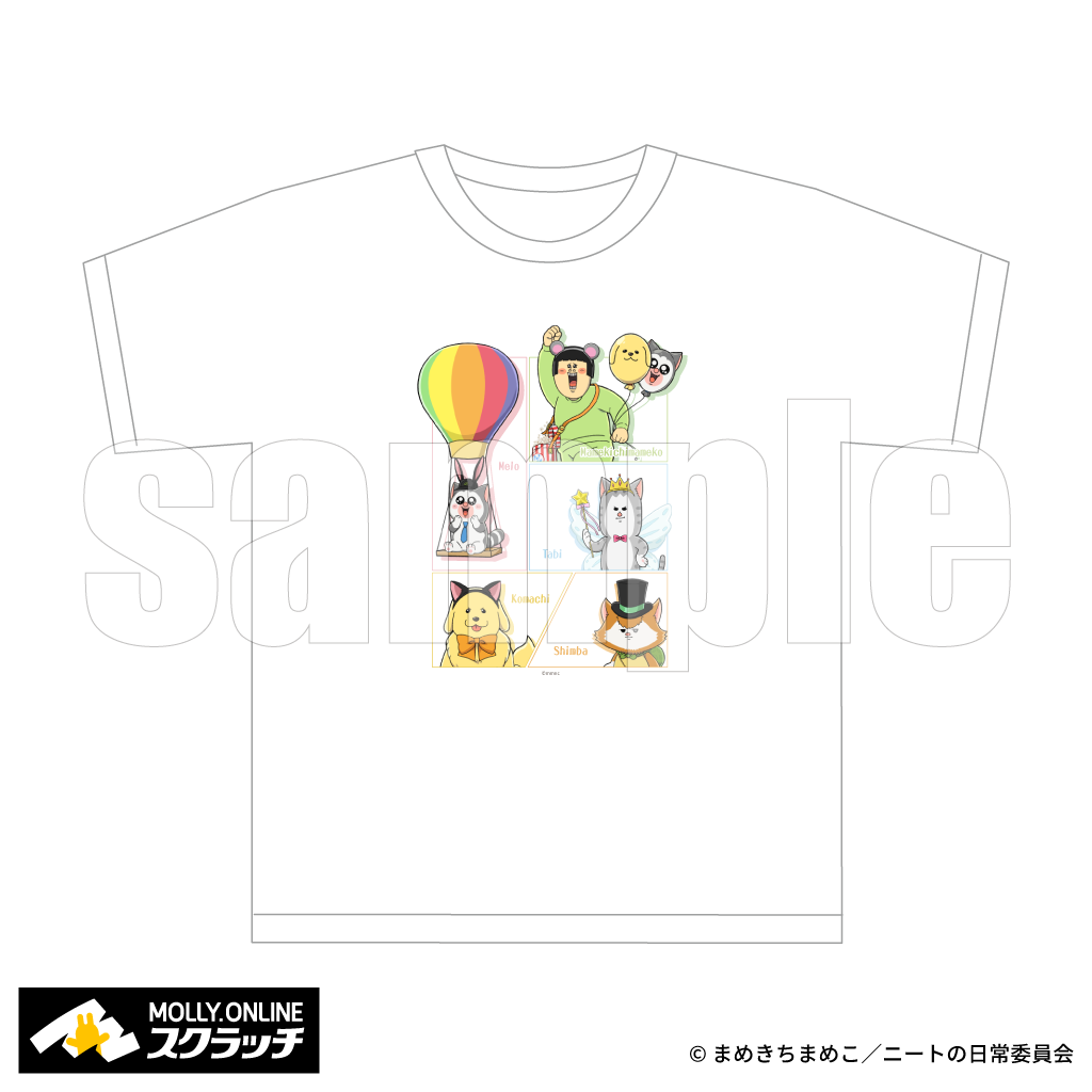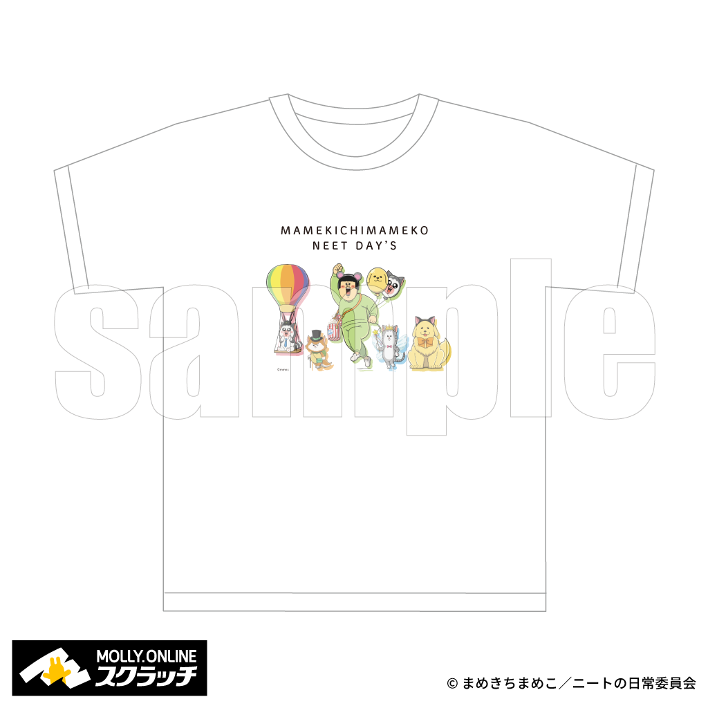 まめきちまめこ、こまち、タビ、シンバ、メロのイラストを使用したTシャツ。