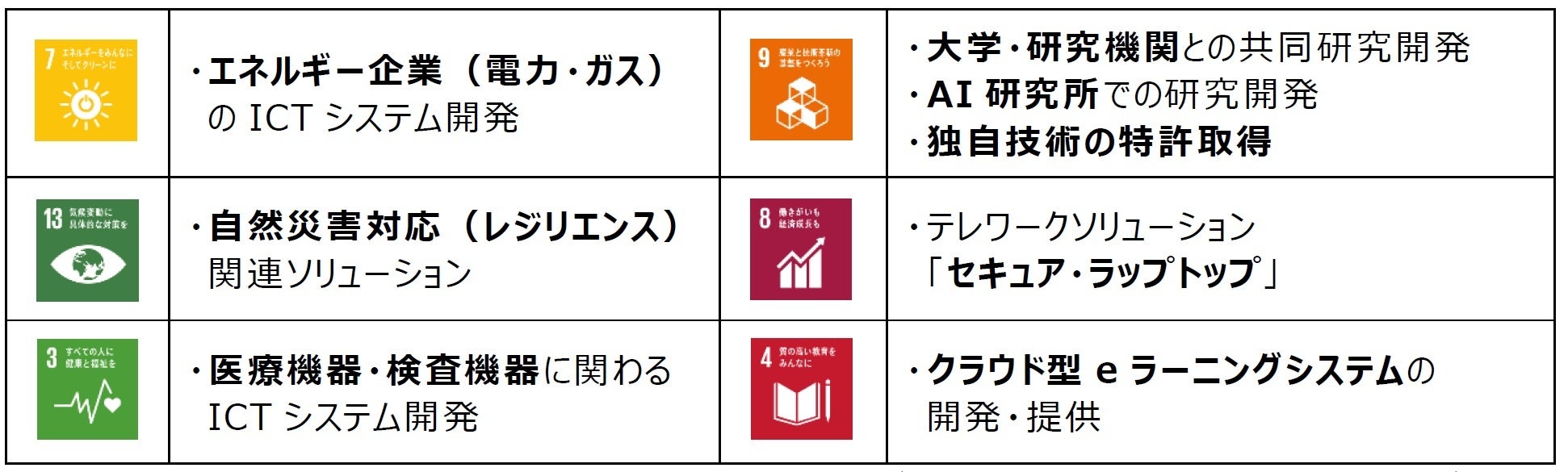 当社は、「暮らしと社会を守る」社会インフラと、「日本のモノづくり」を支えるICTシステムの提供を通じ、SDGs達成に向けた取り組みを続けております。