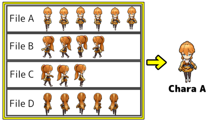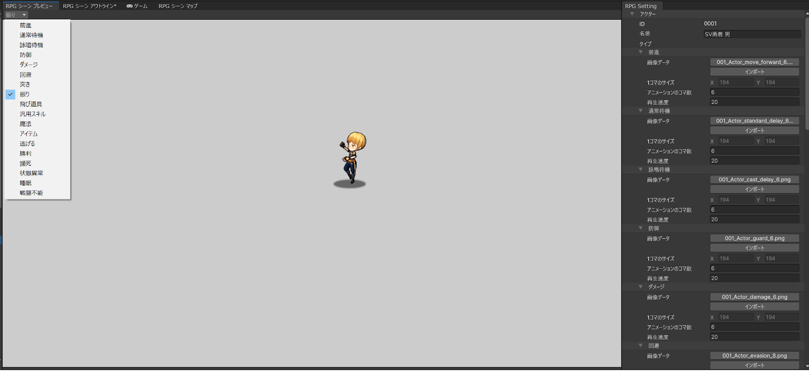 『RPG Maker Unite』では画像最大サイズ (1024 x 1024)内にさえ収まれば、従来のようなキャラクターパターン数の制限はありません。ユーザーがコマ数や演出パターンを自由に設定することが可能です。