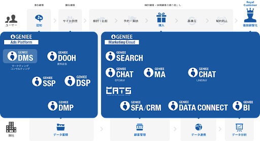 「マーケティングSaaS事業」においては、CRM(顧客管理)/SFA(営業管理)システム「GENIEE SFA/CRM」、マーケティングオートメーション「GENIEE MA」、チャット接客ツール「GENIEE CHAT」、サイト内検索・ECサイト向け商品検索サービス「GENIEE SEARCH」、アフィリエイト広告などの効果測定及びEC事業社向けの広告測定ツール「CATS」などを展開しております。