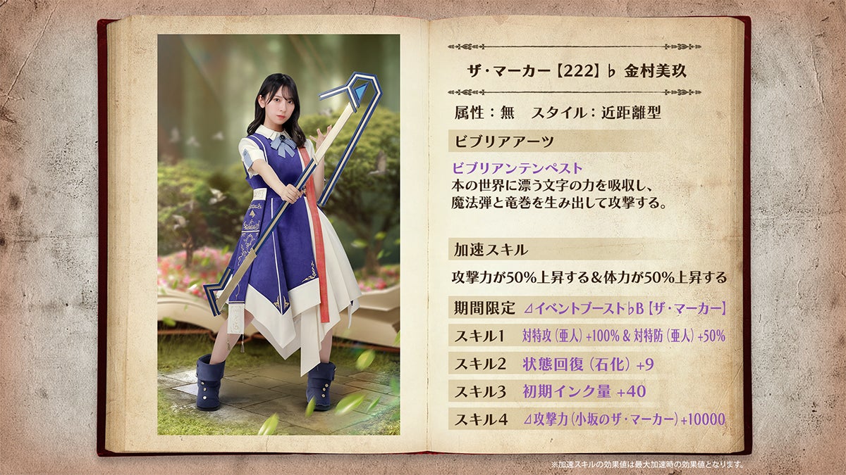 今回イベント報酬にメンバーカード「★4 ザ・マーカー【222】♭ 金村美玖」と「★4 ザ・マーカー【222】♭ 髙橋未来虹」が登場!