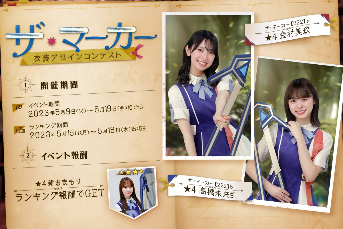 今回イベント報酬にメンバーカード「★4 ザ・マーカー【222】♭ 金村美玖」と「★4 ザ・マーカー【222】♭ 髙橋未来虹」が登場!