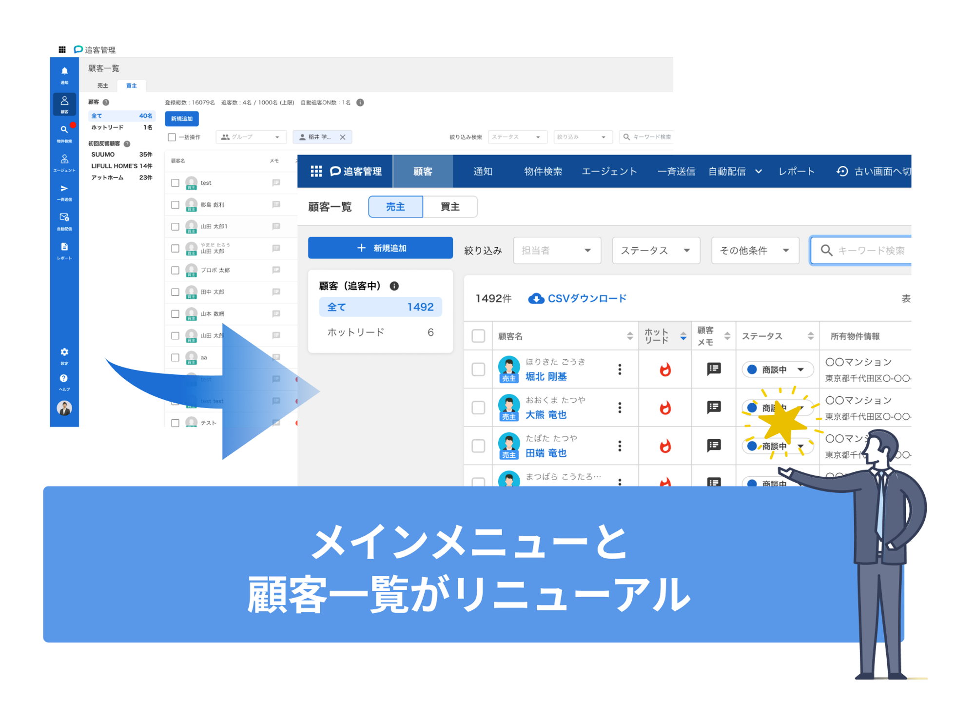 2019年3月リリース以降、物件データベースの拡充と機能改善に取り組み、営業担当者様の日々の業務をご支援して参りました。今回のリニューアルで営業担当者様の操作性を向上し、更なる業務効率化を目指しております。