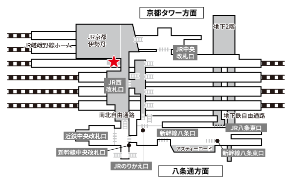 京都市下京区烏丸通塩小路下る 京都駅ビル2階(南北自由通路沿い)