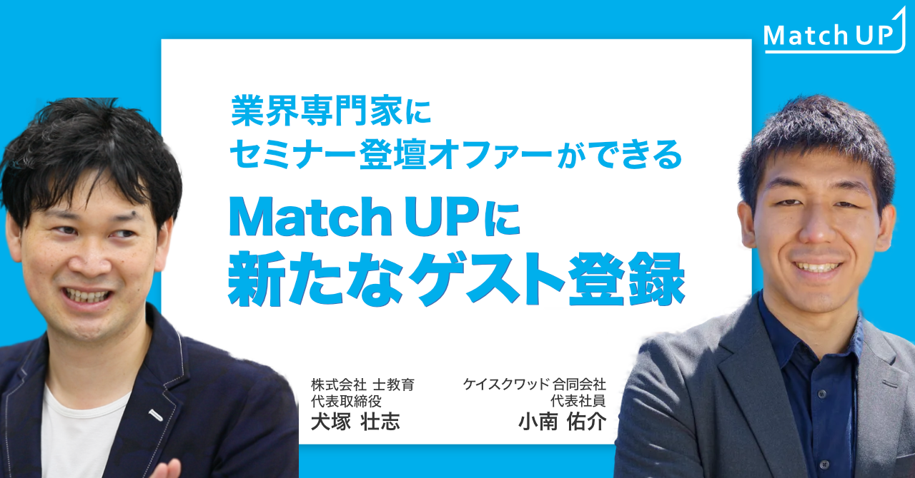 当社は、国内最大級のオンライン展示会「ITトレンド」や、ビジネス動画プラットフォーム「チラヨミ」を通して、多くの企業様、業界専門家の方とのお取引があり、自社のマーケティングノウハウを活かし、このような課題を解消するため、業界専門家にセミナー登壇オファーができるマッチングプラットフォーム「Match UP」の提供を開始いたしました。