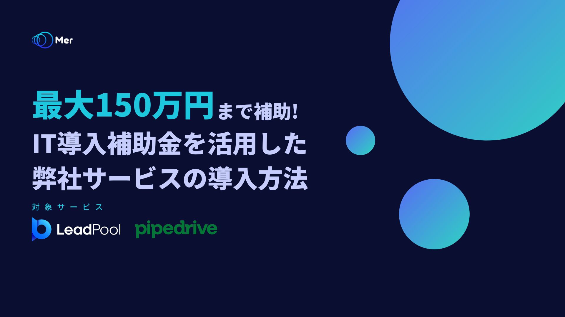 PipedriveとLeadPoolは、お客様がより効率的かつ効果的な営業活動が可能となるよう、開発されたツールであり、IT導入補助金の適用により、導入費用の負担を大きく軽減することができます。