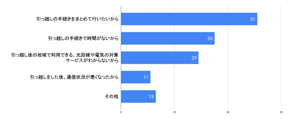 引っ越し後の地域で利用できる、光回線や電気の対象サービスがわからないから:29名