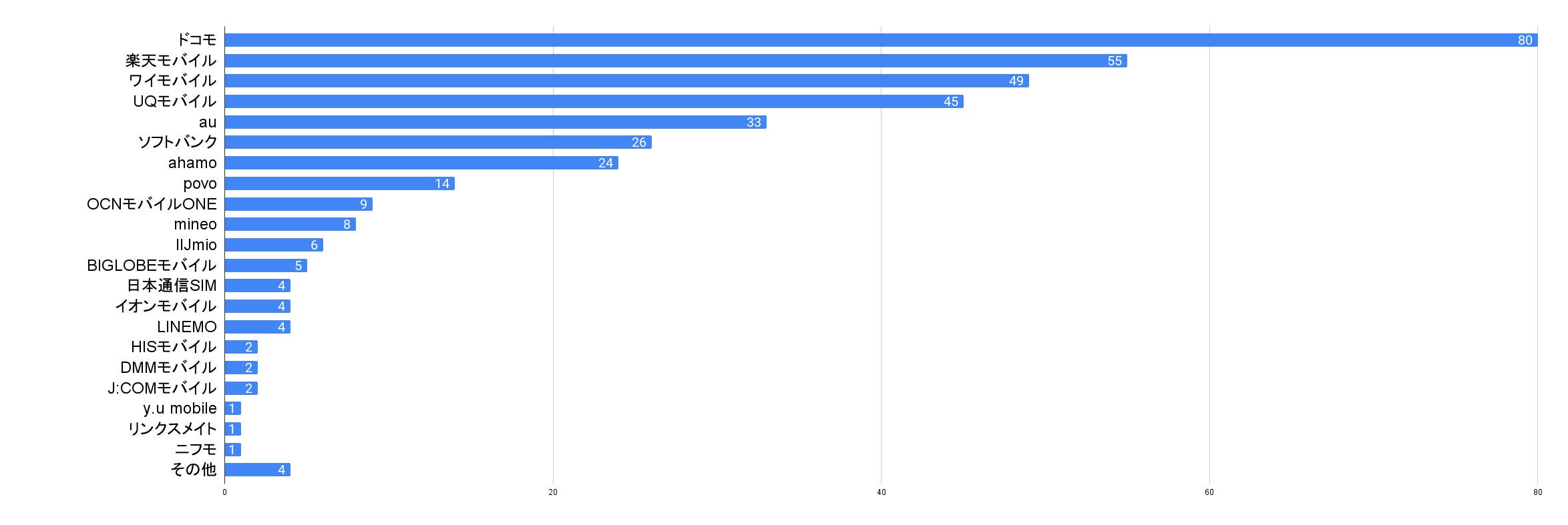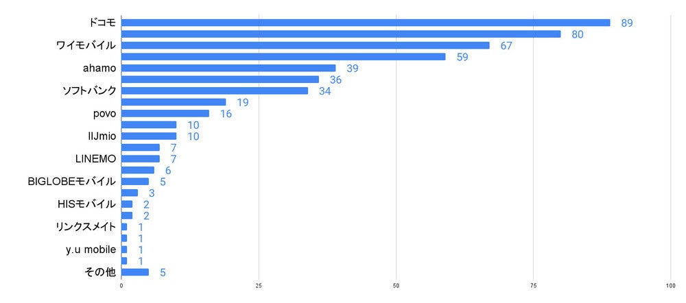また、引っ越しを機にスマホのキャリアを乗り換えていない方が契約しているキャリアは、楽天モバイルやワイモバイル、UQモバイルなどの格安SIMも多いです。