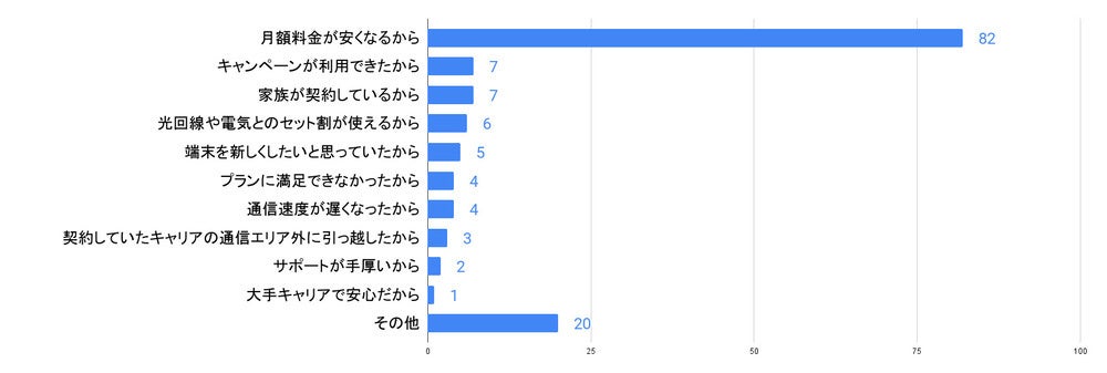 さらに家族で契約することでの家族割引や、光回線や電気サービスを利用することでのセット割もあり、「キャンペーンが利用できたから」「家族が契約しているから」「光回線や電気とのセット割が使えるから」などの理由も多かったです。