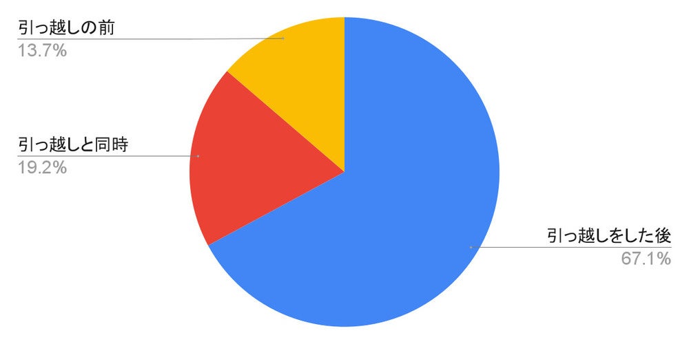 引っ越しを機にスマホを乗り換える時期については、「引っ越しをした後」に乗り換える方が全体の約7割弱でした。