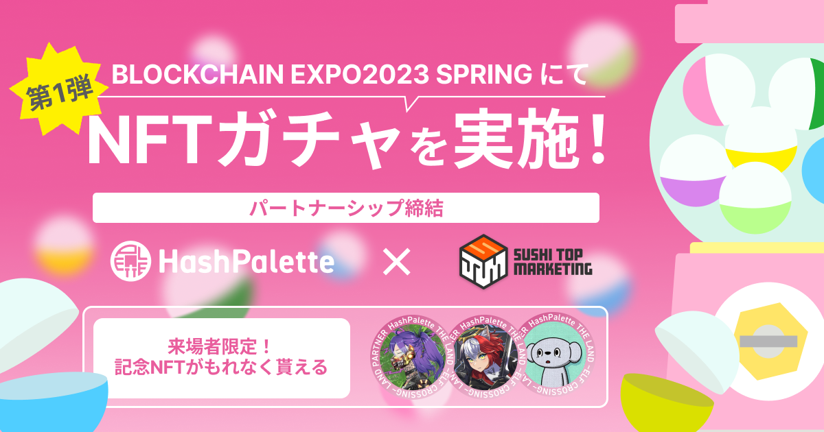 5/10(水)〜12(金)開催の「第4回 ブロックチェーン EXPO【春】」にて当社の提供する「One Shot」の仕組みを用いたNFTガチャをパレットチェーン上で実施いたします。こちらのNFTガチャでは、先日HashPalette社からリリースのあった「THE LAND 〜エルフの森〜」のLAND Partnerに参画頂いたプロジェクトの皆様の代表的な画像をNFTとして配布予定です。詳細はHashPalette社のプレスリリースをご覧ください。