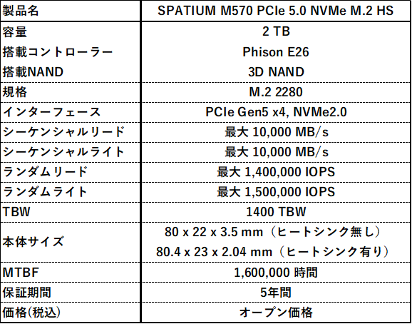 ■SPATIUM M570 PCIe 5.0 NVMe M.2 2TB HS