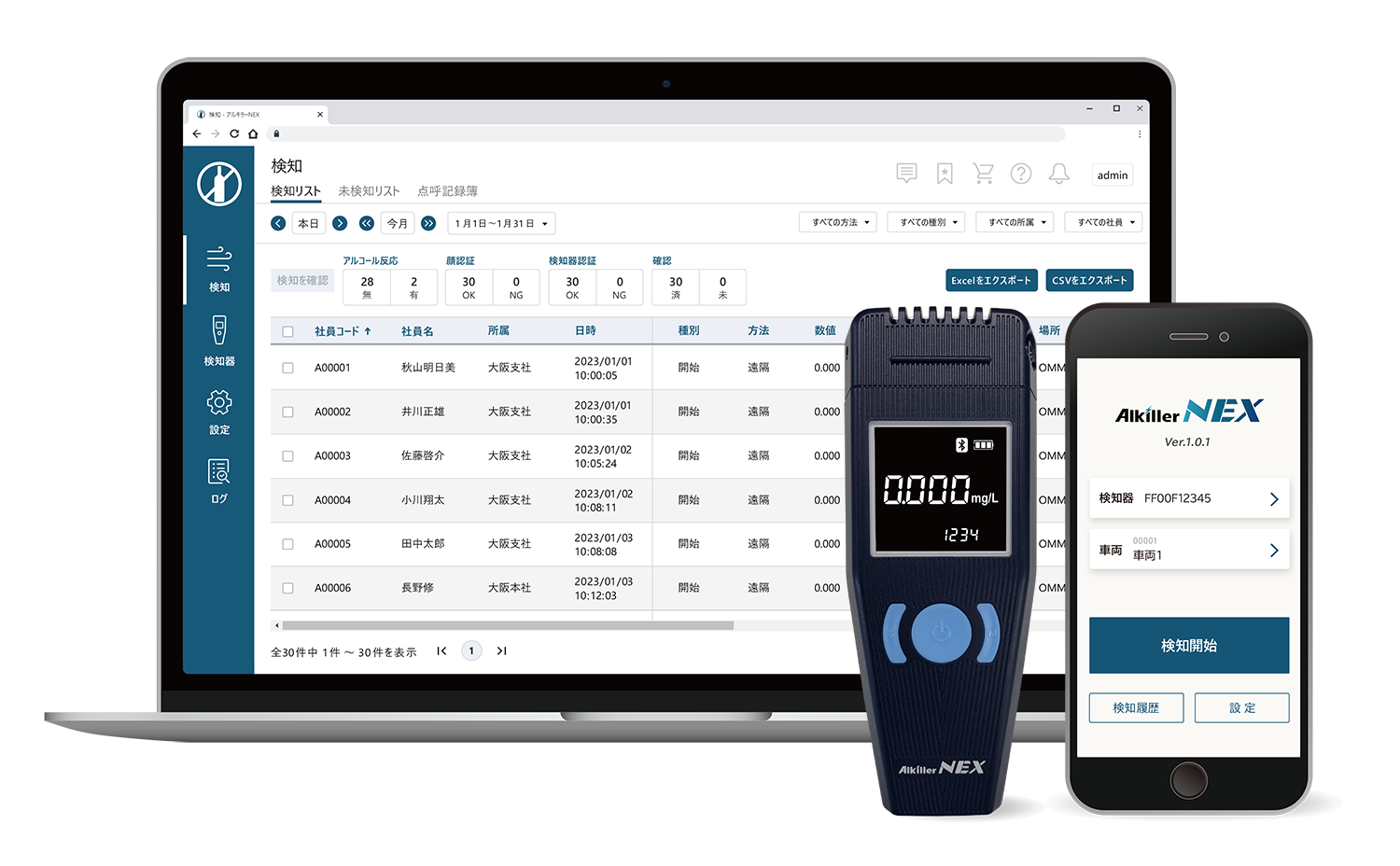 株式会社パイ・アール(本社:大阪府大阪市 代表取締役:安田 功)が提供する「アルキラーNEX」であれば、顔認証などの不正防止機能や充実した毎年の自動機器校正の対応などでアルコール検知自体の各社サポートはもちろんさせていただいておりますが、各社様のアルコール検知に関する運用構築のサポートやご提案もしっかりとさせていただきます。