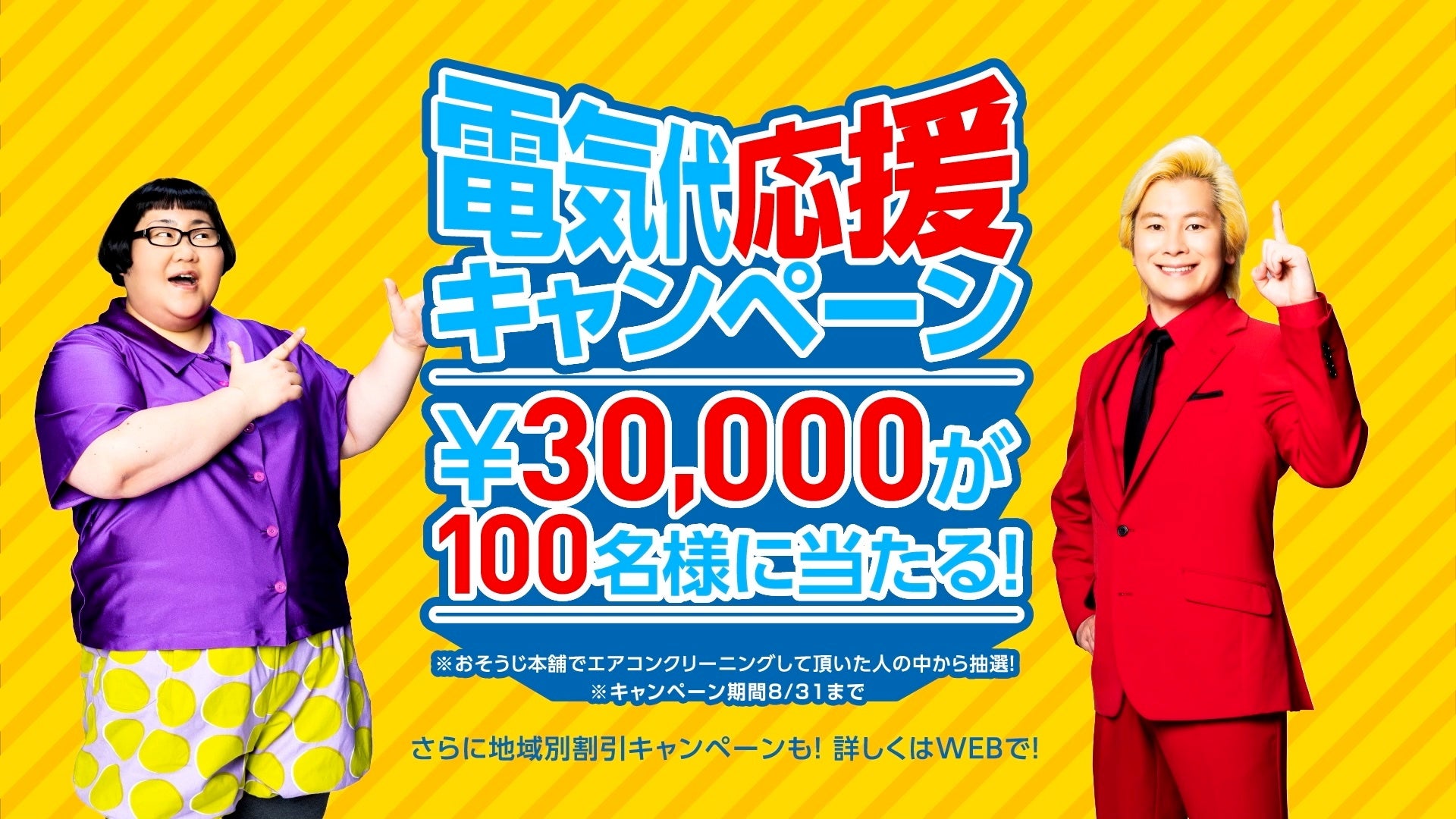 内容:期間中、『おそうじ本舗』のエアコンクリーニングを行った方の中から抽選で100名に3万円が当たる
