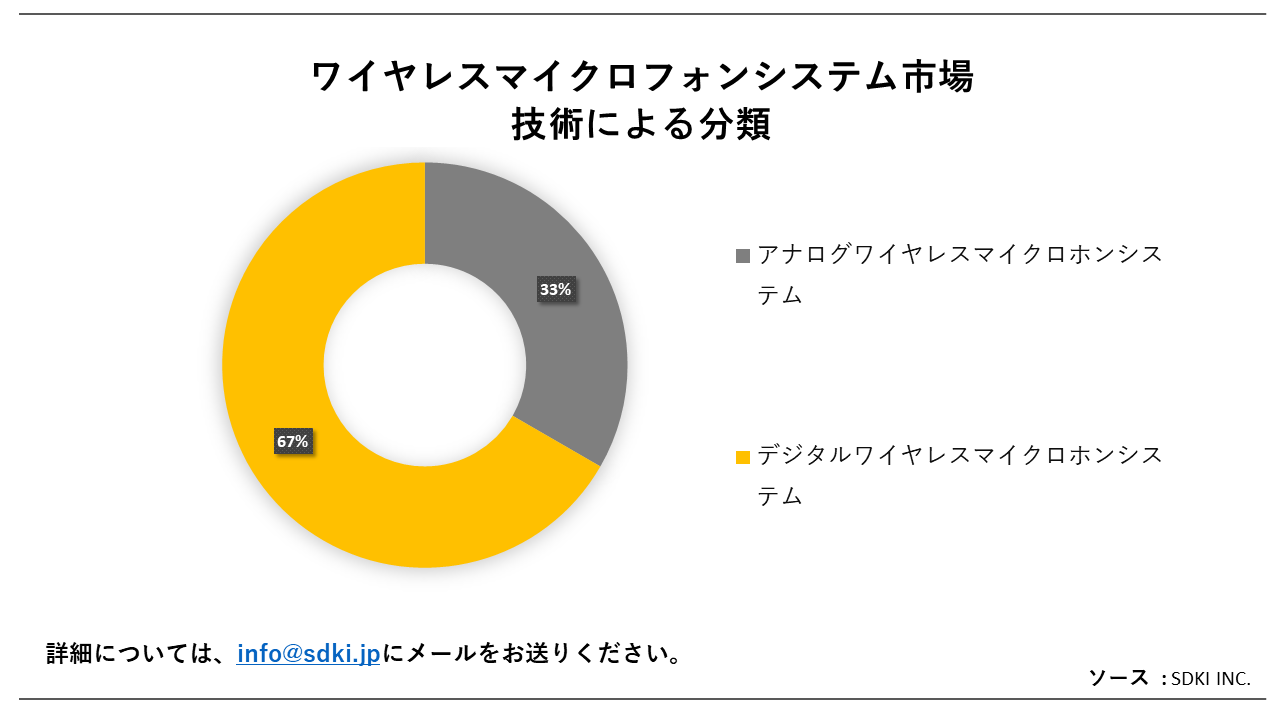 質問:ワイヤレスマイクロフォンシステム市場の主要な分類は何ですか?