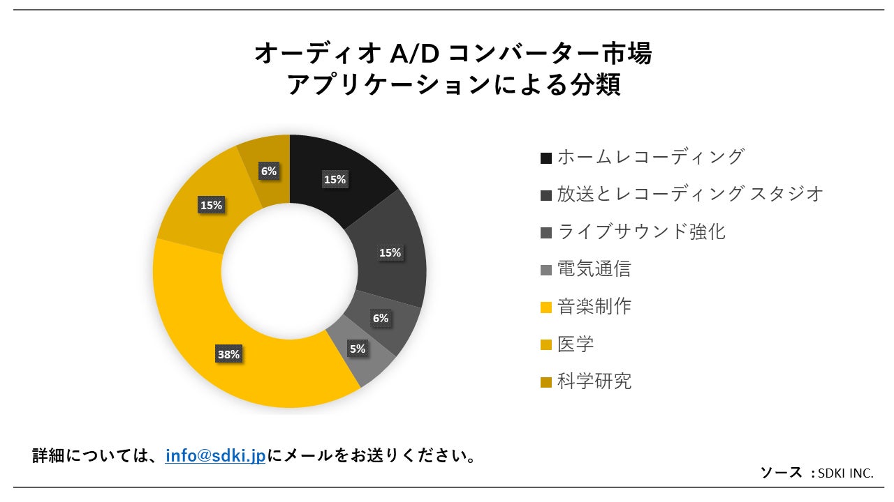 アプリケーションに基づいて、音楽制作のセグメントでは、予測期間中にオーディオ A/D コンバーターが大幅に使用されると推定されています。この成長は、音楽に対する需要の高まりに起因する可能性があります。世界中の人々の約 90―92% が音楽を聴いています。そのため、音楽制作の需要が高まっています。ただし、高品質の音楽の必要性は必要です。したがって、アナログ信号の複雑さを正確にキャプチャし、ノイズや歪みを発生させることなくデジタル データに変換する能力は、高品質の録音を作成するために不可欠な高品質の A/D コンバーターの性能に依存します。