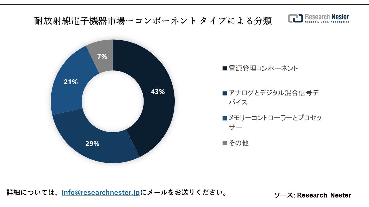 世界の耐放射線電子機器市場は、アナログとデジタルの混合信号デバイス、メモリ コントローラーとプロセッサ、電源管理コンポーネントなどのコンポーネントタイプ別に、需要と供給についても分割および分析されています。これら 4 つのセグメントの中で、電源管理コンポーネント セグメントが大きなシェアを獲得すると予想されます。高放射線レベルの困難な状況での信頼できる動作に対する重要な要件により、耐放射線デバイスでは電力管理が非常に要求されます。