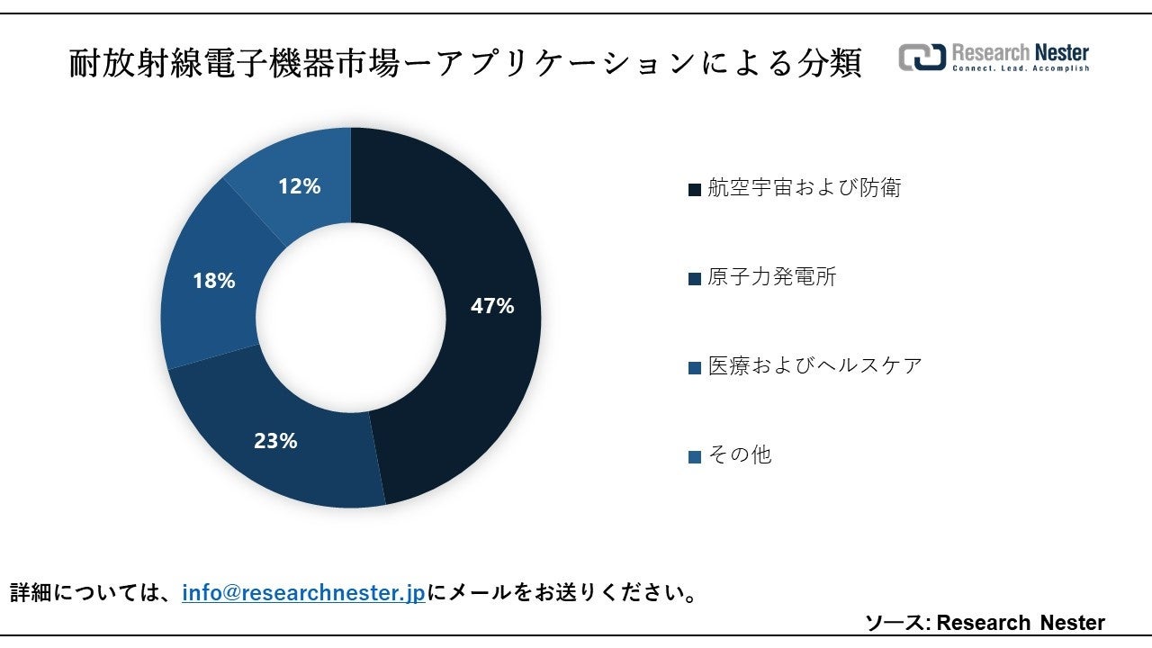 世界の耐放射線電子機器市場は、航空宇宙と防衛、原子力発電所、医療とヘルスケアなどへの用途別に、需要と供給について分割および分析されています。4つのタイプのうち、航空宇宙および防衛セグメントは、予測された時間枠で最大の市場シェアを獲得すると推定されています。このセグメントの成長は、世界中の政府による投資の増加に起因する可能性があります。航空宇宙および防衛部門は、宇宙、高高度、核設定など、放射線が豊富な環境で頻繁に使用されます。インド国防省は、2025 年までに航空宇宙および防衛製造業の収益を 20百万米ドル以上にするという目標を設定しました。